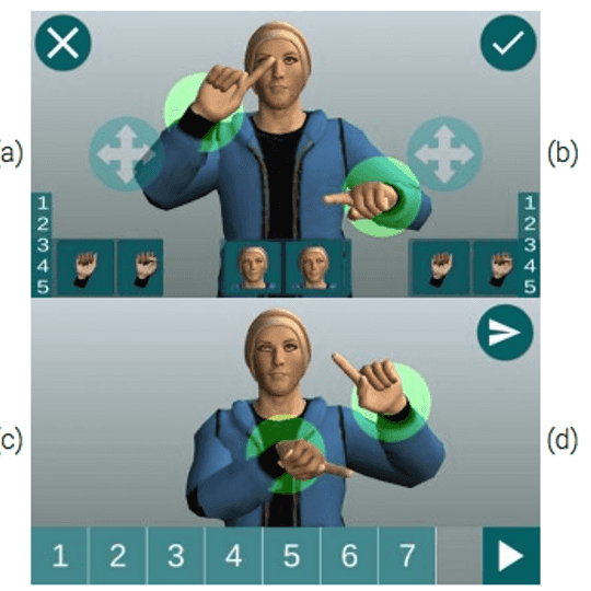Making it easier for the deaf to communicate on the Internet: This is the aim of the “SmartSignCapture” research project at the MultiMediaTechnology course. For many of the 8,000 deaf people in Austria, reading and writing is a challenge. Online communication therefore often uses sign language videos. The disadvantage is that content cannot be changed after recording. In addition, production is time-consuming, videos need actors and cannot be made anonymous. In the SmartSignCapture research project, a system was developed that enables sign language to be transferred anonymously and as intuitively as possible to an avatar via a 3D editor on a personal mobile device.